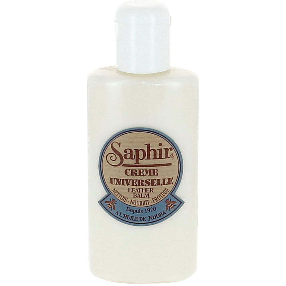 Очиститель-бальзам Creme universelle идеально подходит для всех видов гладких кож (одежда, обувь, мебель, кожгалантерея. Оригинальная формула на основе ланолина, натурального пчелиного воска и масла Jojoba одновременно мягко очищает, интенсивно питает, увлажняет и придает коже водоотталкивающие свойства. Благодаря уникальному составу кожа приобретает мягкость и благородный матовый блеск после полировки. Флакон 150мл., бесцветный.