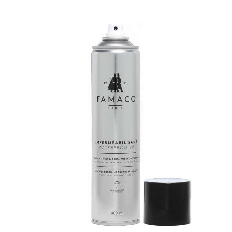 Универсальная водоотталкивающая пропитка AEROSOL IMPERMEABILISANT FAMACO 400 мл окажет эффективную защиту вашей обуви и одежде от воды, влаги, снега, реагентов и любых других жестких внешних факторов. Пропитка для обуви сохранит красивый, оригинальный внешний вашей обуви, предотвращая проникновение воды и влаги, при этом сохраняя способность обрабатываемой поверхности «дышать». Таким образом, защищенная от дождя или снега, ваша обувь остаётся сухой, а защитный водоотталкивающий барьер не даёт оседать пыли и сохранит вашу обувь идеально чистой!